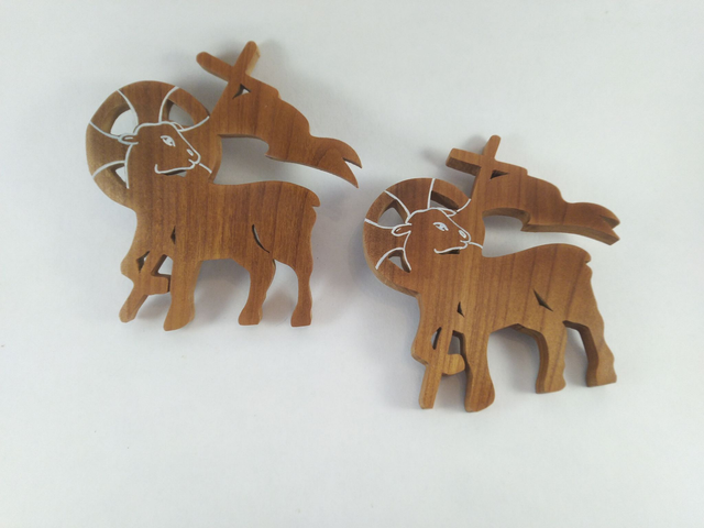 Belle silhouette d'agneau pascal en bois massif avec détails peints à la main en blanc.
