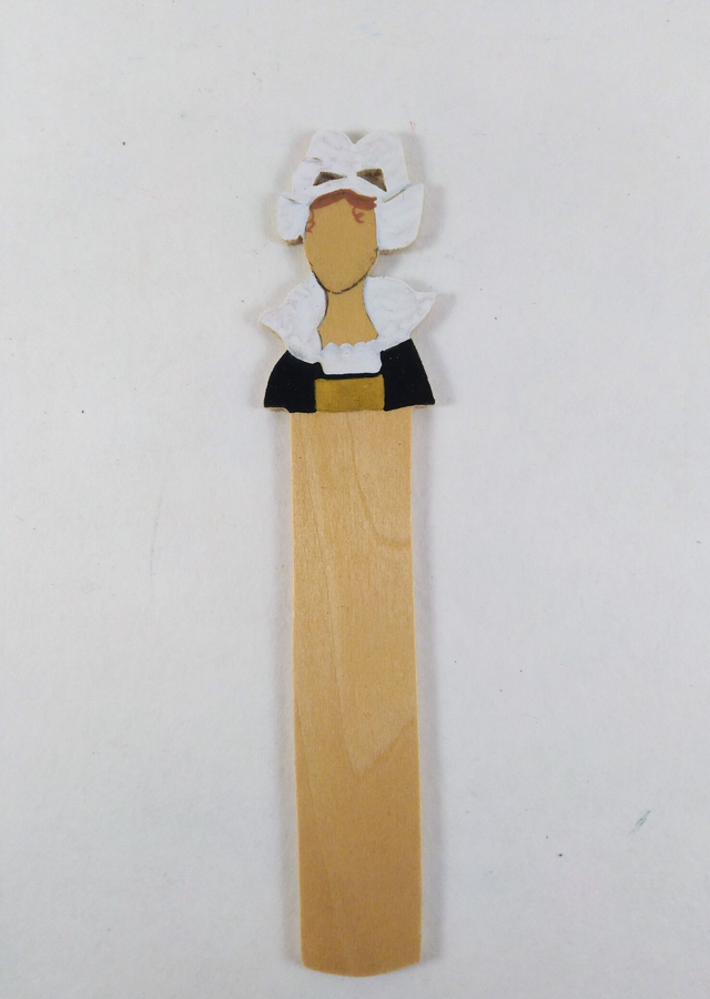 Marque-page découpé et peint à la main, représentant une jolie petite bretonne.