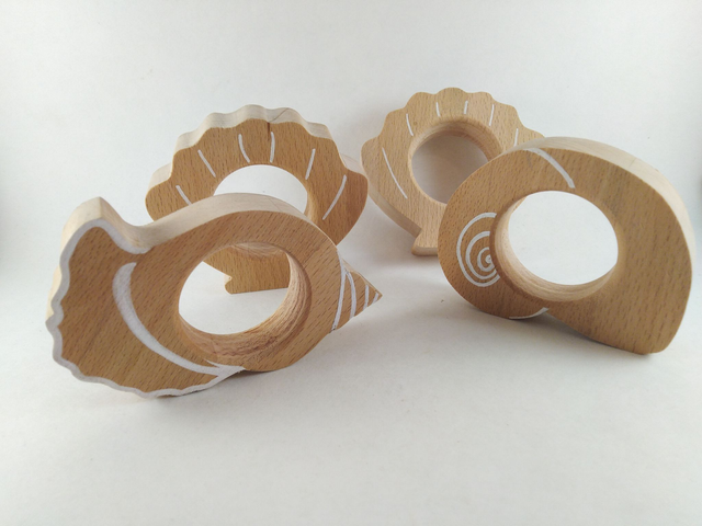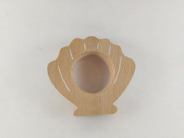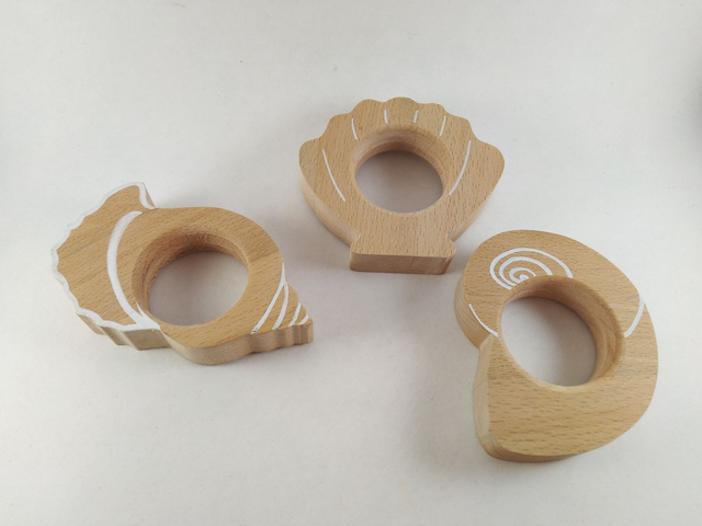 Rond de serviette en bois massif (hêtre), détails peints à la main en blanc.